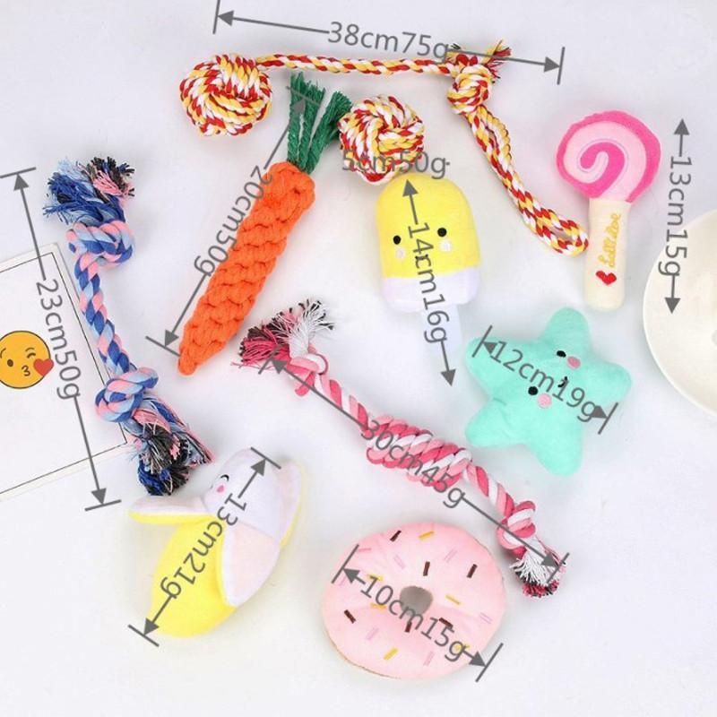 ¡Más juguetes y más diversión! ¿Por qué comprar un solo juguete cuando puedes aumentar la diversión para tu mejor amigo? El kit de juguetes que traemos te ayudará a compartir momentos especiales con tu perro. Cada juguete incluido está hecho de materiales resistentes que permiten a los perros masticar con seguridad y promover la salud dental.